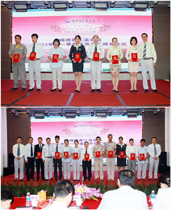 有時候,愛其實是一種感恩,感恩便是用心珍惜曾經經歷的,把握現在擁有的一切。今天酒店所有員工歡聚一堂,感恩與分享,感謝在錦繡香江溫泉城的日子里我們獲得成長。值此之日,酒店常務副總經理韓本寧先生為第一季度酒店優秀員工,各部門負責人為第一季度部門優秀員工頒獎,感謝在錦繡香江溫泉城每一個崗位上默默付出的同仁。