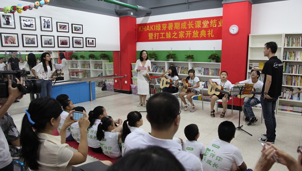 8月3日,一個特殊的結業典禮在廣州赤崗的綠芽基金會活動中心舉行。20多名外來工子弟在這里系統地學習了小公民教育、青春期關愛、自我管理、興趣開發等課程。這個留守孩子暑期成長課堂,讓“小候鳥”們在白天有了能學到東西的一個“落腳點”,讓參與的孩子過上一個不再孤單而又豐富多彩的假期。小朋友們表演了吉他彈唱、舞蹈、詩歌朗誦等節目,贏得了在場嘉賓和媒體、家長代表的陣陣掌聲。