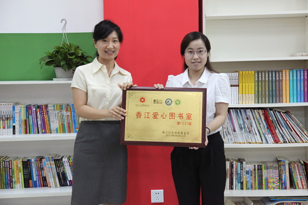 綠芽暑期成長課堂結業典禮上,香江社會救助基金會副秘書長龍翠婷向綠芽基金會代表授牌,第1093間香江愛心圖書室正式落戶廣州赤崗的綠芽基金會活動中心。這也是香江愛心圖書館項目進入深圳和東莞等外來兒童聚居的大城市后,首次落戶廣州。