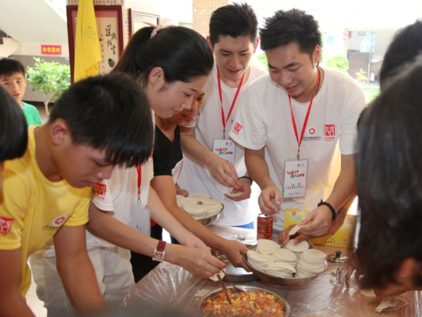 義工和孩子們組成了八個小家庭,家庭里的每個人都有各自的角色,每個家庭都有一張任務卡,家庭成員通過分工合作,共同體驗了包餃子比賽、爬山等游戲。28日晚上,一場別開生面的聯歡晚會再一次拉近了義工和孩子們的距離,為了展示各自的小家庭,大家紛紛利用各種閑暇時間出點子、勤排練,原本還有些生疏的“家人”,很快就熱乎了起來,汗水和歡笑揮灑在福利中心的每一個角落里。